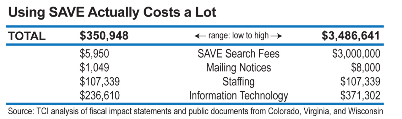 A proposal to use an online federal system to verify the citizenship status of voters on the state’s rolls could cost Virginia between $351,000 and $3.5 million in the first year and could end up denying U.S. citizens the right to vote. But a state fiscal impact statement accompanying the bill – SB1077 – says it won’t cost anything. What’s more, the program doesn’t do what the bill suggests. >>Read our full analysis