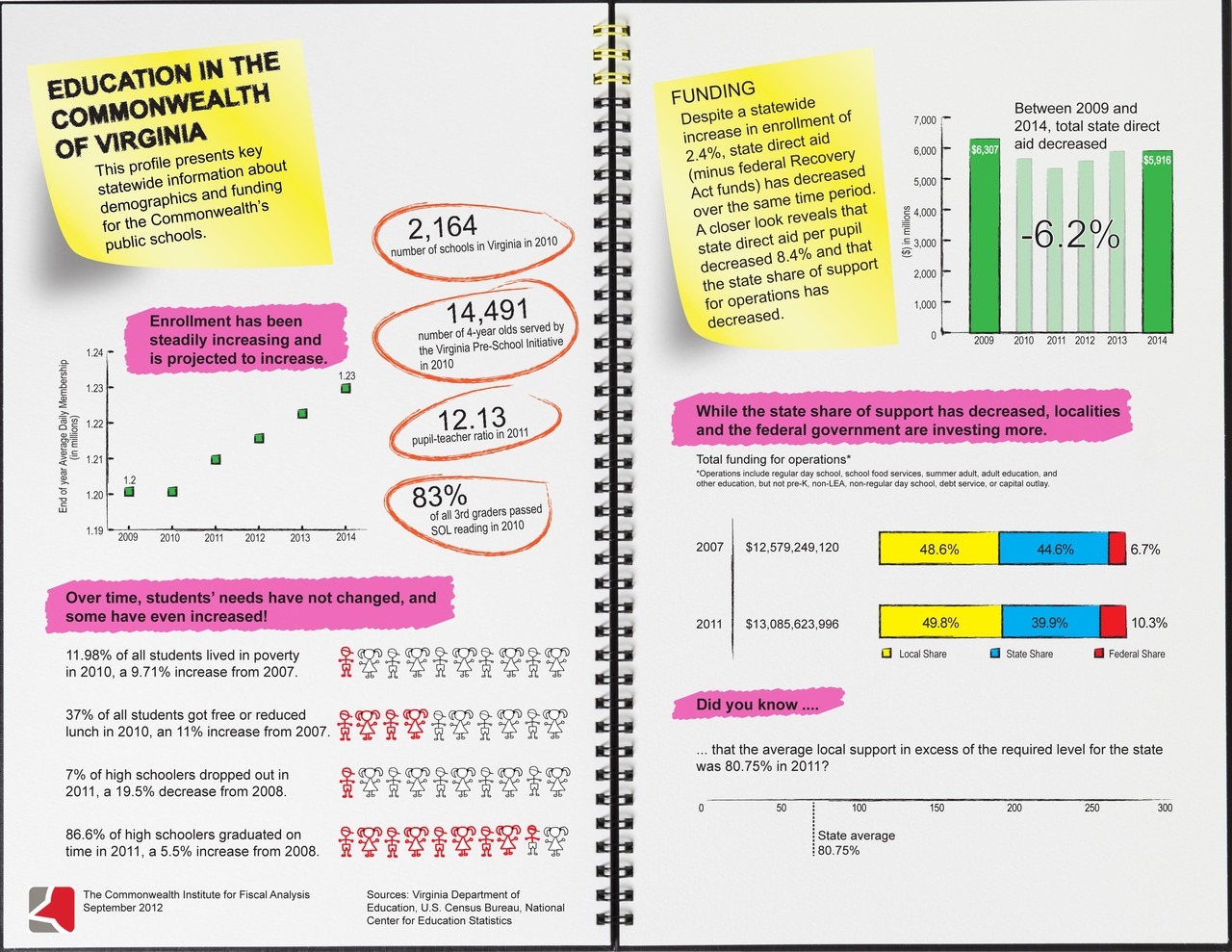 Despite a statewide increase in enrollment of 2.4%, state direct aid (minus federal Recovery Act funds) has decreased over the same time period. A closer look reveals that state direct aid per pupil decreased 8.4% and that the state share of support for operations has decreased. >> see more here