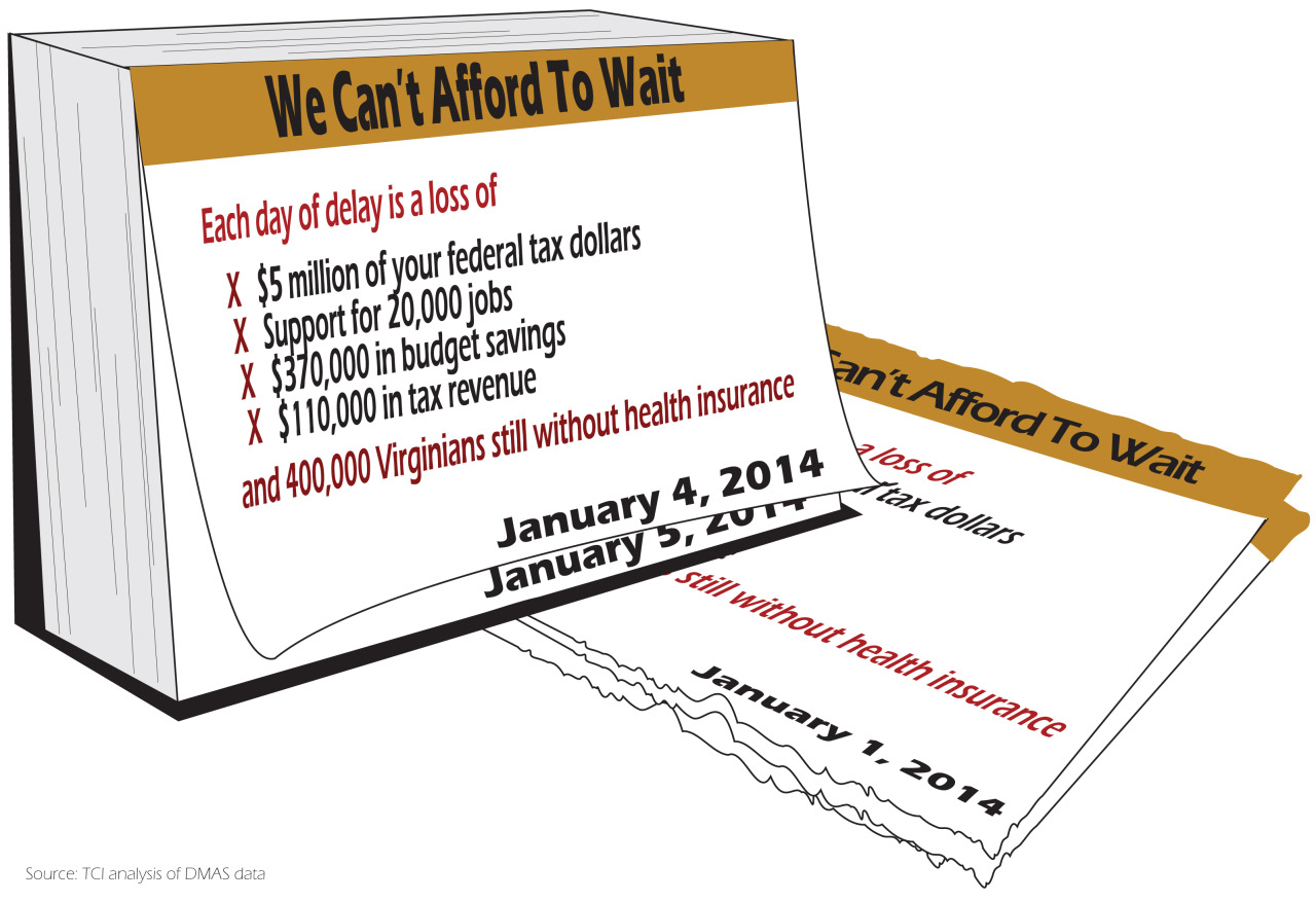 The budgets released by the Senate Finance and House Appropriations Committees on Feb. 3 both include proposals to delay expanding Medicaid until at least mid-2014. But the federal government’s deal to pay for 100 percent of the cost of expanded starts on January 1, 2014. Each day that Virginia delays expansion means that the state will lose about $5 million in federal funds and hundreds of thousands more in lost state budget savings and lost tax revenue from the new jobs that would be created from the influx of federal funds.