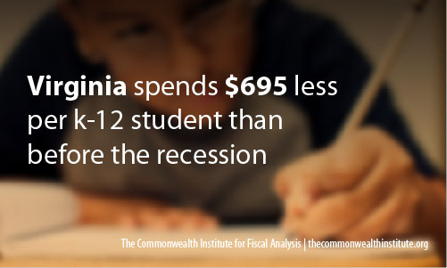 Yet even as revenues have begun to recover, Virginia has only restored a small fraction of the education funding that was cut during the downturn, leaving spending per student this year $695 below pre-recession levels when you take inflation into account.